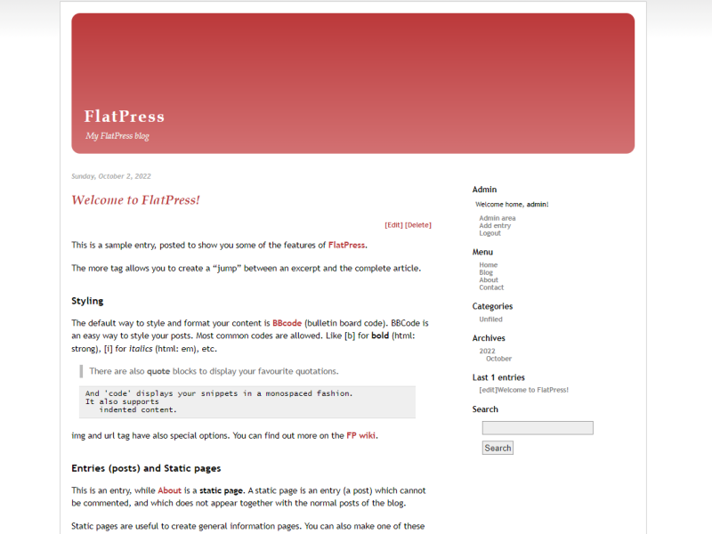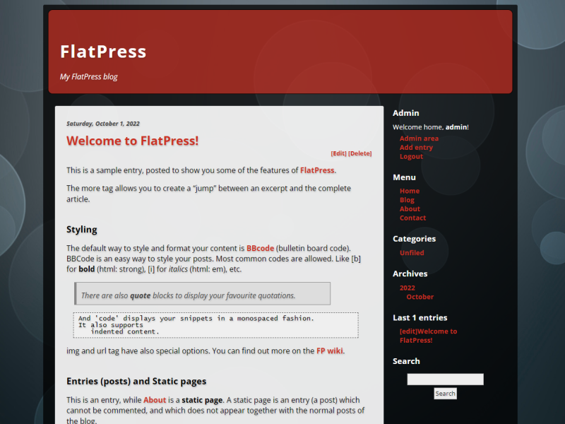 This is a sample entry, posted to show you some of the features of FlatPress.
